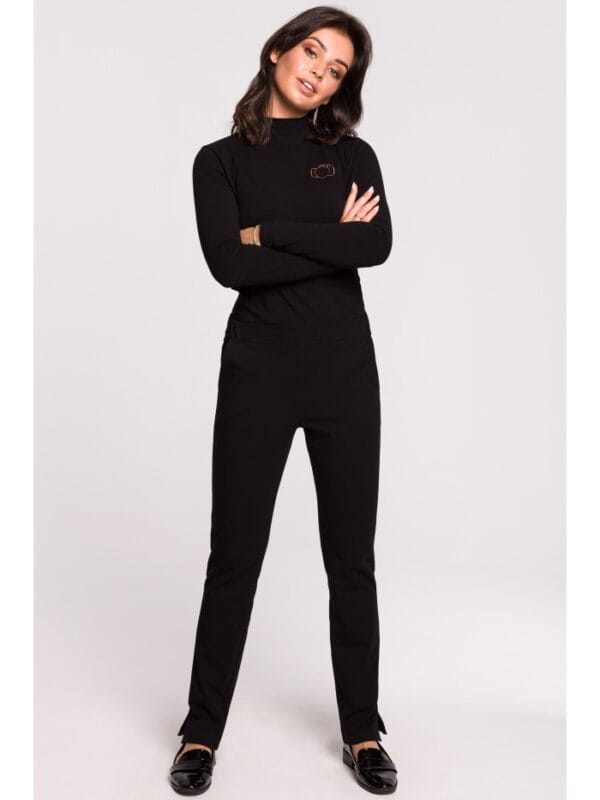 Spodnie bawełniane z prostymi nogawkami z rozcięciami na bokach i ukośnymi kieszeniami. Idealnie się dopasowują dzięki paskowi z gumką z tyłu. Spodnie uszyte są z wysokiej jakości dzianiny co zapewnia wysoki komfort noszenia, a ich uniwersalny krój sprawdzi się w codziennych sytuacjach.