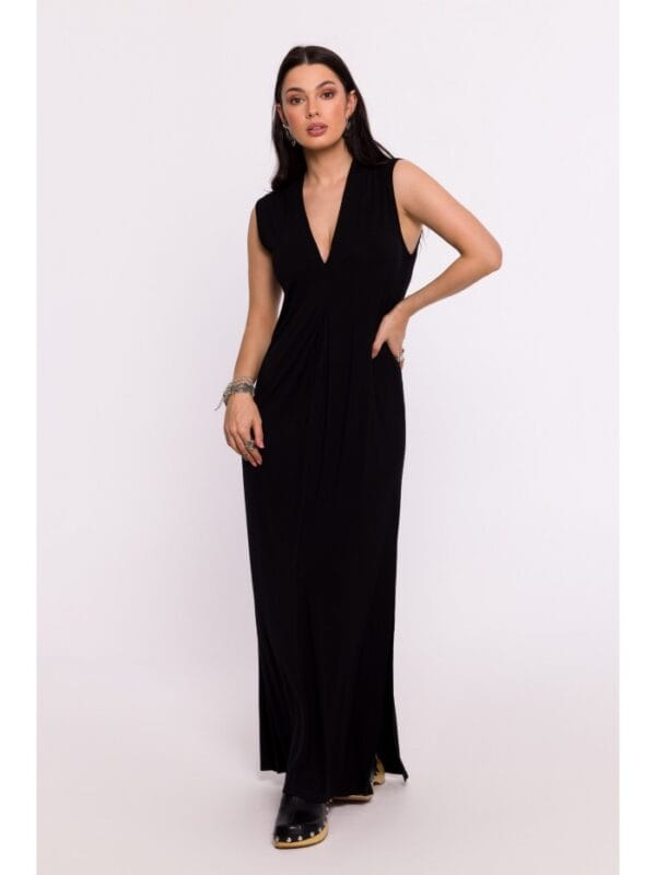 Napisz pierwszą opinię o „B284 Sukienka wiskozowa maxi z zakładką – czarna”