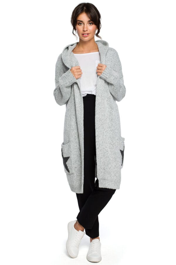 • fason: długi kardigan z kapturem