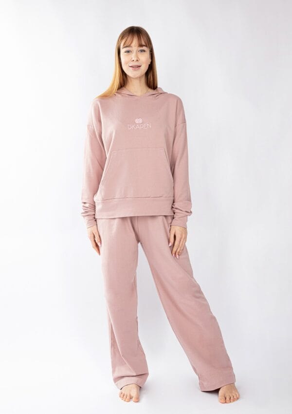 Poznaj wyjątkowy komplet dresowy marki Dkaren DK-K-B8-H1, który łączy nowoczesny styl z niezrównaną wygodą. Stworzony z myślą o kobietach ceniących modę i komfort, ten zestaw to doskonały wybór na co dzień. Komplet składa się z bluzy z kapturem oraz długich, rozszerzanych spodni, które razem tworzą elegancką i funkcjonalną całość. Komplet jest wykonany z bawełny.