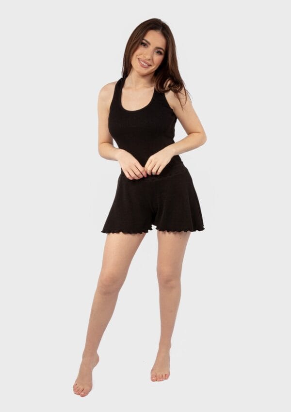 Komplet w prążki to esencja wiosny i lata, stworzona dla kobiet ceniących sobie zarówno styl, jak i wygodę. Jego lekka tkanina delikatnie otula ciało, zapewniając niepowtarzalne uczucie swobody i lekkości, które są idealne na ciepłe dni i letnie wieczory. Komplet składa się z bluzki w prążki na ramiączka oraz dopasowanych szortów zakończonych delikatnym falbankowym obszyciem. Szorty zakończone gumką w pasie idealnie przylegają do ciała. Romantyczne falbanki, dodają temu kompletowi niezwykłego dziewczęcego uroku, podkreślając Twoją delikatność i kobiecość. Dostępny w szerokiej gamie kolorów, komplet w prążki DKaren pozwala Ci wyrazić swoją indywidualność, dopasowując się do Twoich preferencji i nastroju. Bez względu czy decydujesz się na delikatne odcienie nude, czy może wybierzesz intensywne odcienie, zawsze będziesz emanować pewnością siebie i stylowym wdziękiem.
