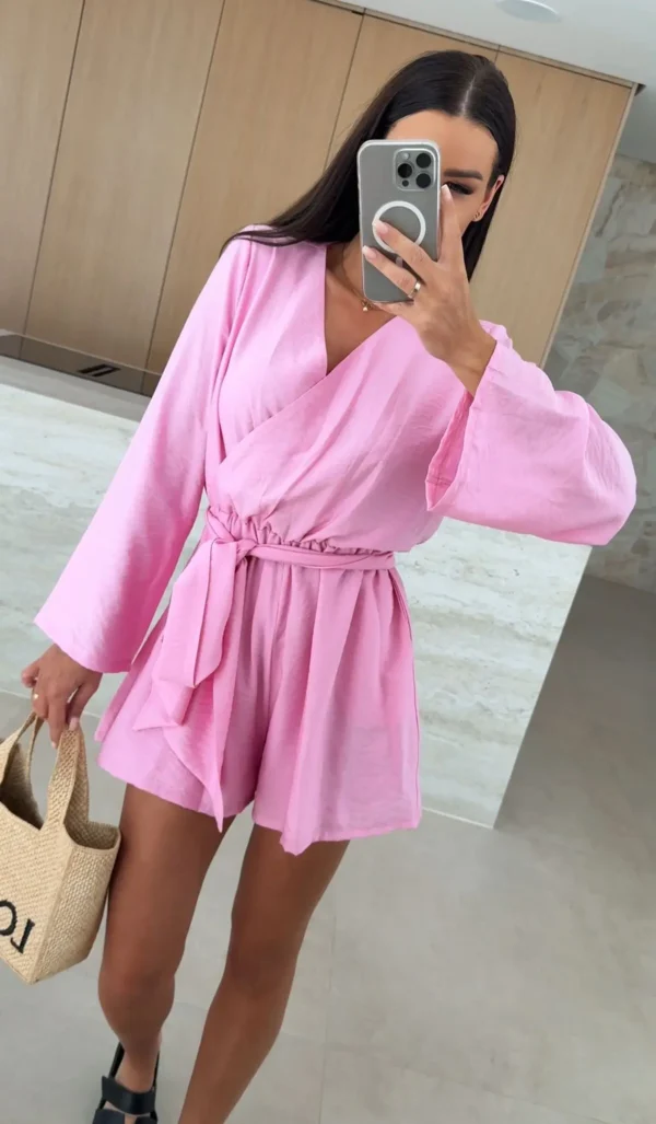 ? Różowy, zwiewny kombinezon