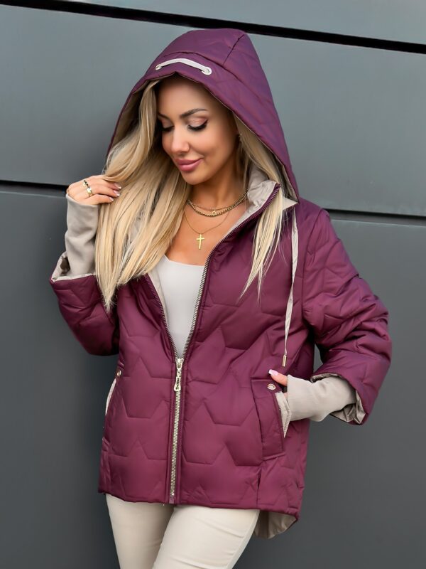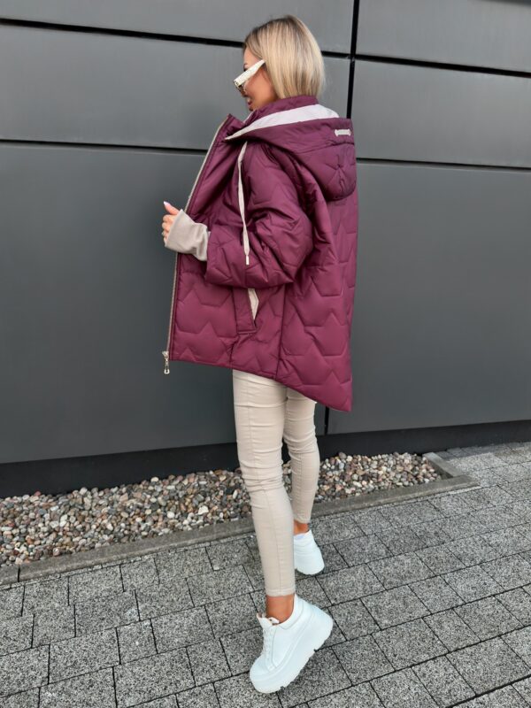 Modna kurtka o asymetrycznym kroju z efektownym pikowaniem. Idealna na sezon przejściowy i chłodniejsze dni, łącząca komfort z nowoczesnym stylem.