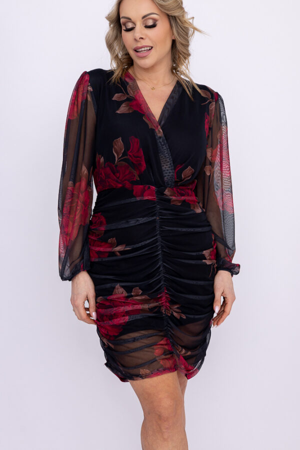 Ta sukienka to połączenie kobiecego szyku i nowoczesnego stylu. Idealna na wyjątkowe okazje – wesela, randki, wieczorne wyjścia czy imprezy. Fason podkreślający figurę, z efektownym marszczeniem, które optycznie modeluje sylwetkę i ukrywa niedoskonałości.